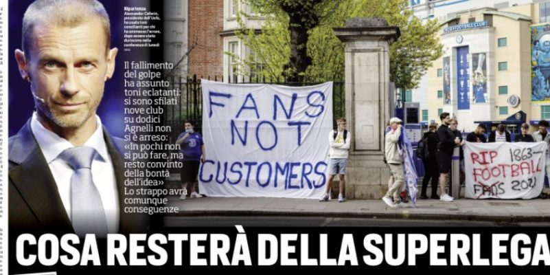 Corriere dello Sport: “Cosa resterà della Superlega. Ceferin conciliante «Ammirevole ammettere gli errori». Ma l’Uefa domani deciderà le eventuali sanzioni per i ribelli Real, Barça e Juve”