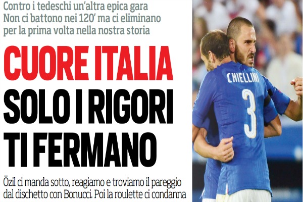 Corriere dello Sport: “Cuore Italia, solo i rigori ti fermano”