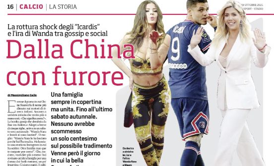 Corriere dello Sport: “Dalla China con furore. La rottura shock degli “Icardis” e l’ira di Wanda tra gossip e social”