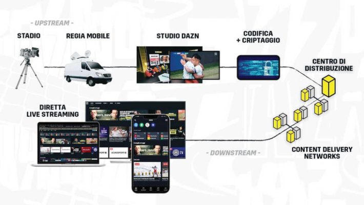 Il numero degli abbonati a Dazn, intanto, sta aumentando come dimostrano le illustrazioni di ieri. Sono state messe a disposizione degli operatori ulteriori CDN che sono cresciute del 30% rispetto a quelle già attive che continuano a essere ottimizzate grazie al tavolo di lavoro congiunto e continuativo avviato con tutti gli operatori, e del 20% per i contenuti fruiti on demand. La CDN (Content Delivery Network) – è una rete di server interconnessi che velocizza il caricamento di pagine Web per applicazioni ad alto contenuto di dati. CDN può significare sia rete di consegna di contenuti che rete di distribuzione di contenuti. Prosegue inoltre intensamente l’attività di potenziamento ed estensione della tecnologia multicast, è stato rilasciato con pieno successo il servizio Full HD con qualità superiore al digitale terrestre e infine è stato rilasciato il video player DAZN sviluppato in house che migliora le performance di stabilità e qualità in particolare sui terminali tv.