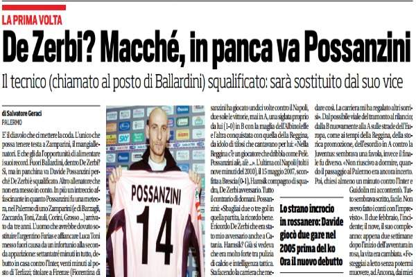 Corriere dello Sport: “De Zerbi? Macché, in panca va Possanzini. Lo strano incrocio in rosanero: Davide giocò due gare nel 2005 prima del ko. Ora il nuovo debutto”
