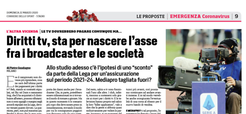 Corriere dello Sport: “Diritti tv, sta per nascere l’asse fra i broadcaster e le società”