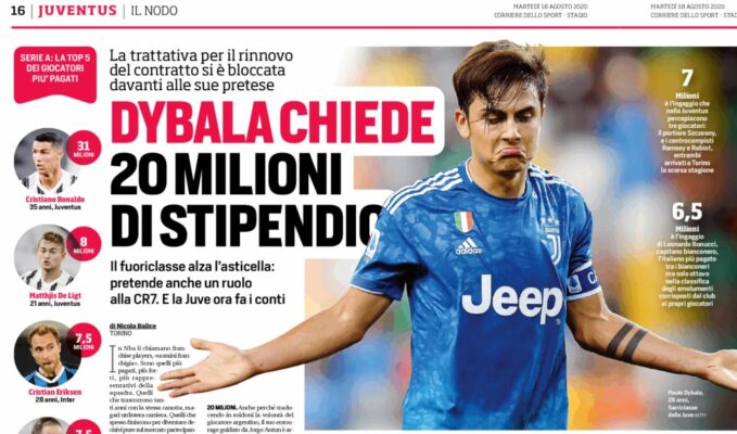 Corriere dello Sport: “Dybala chiede 20 milioni di stipendio”
