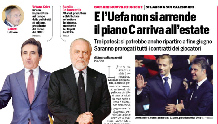 Corriere dello Sport: “E l’Uefa non si arrende. Il piano C arriva all’estate. Tre ipotesi sul tavolo”