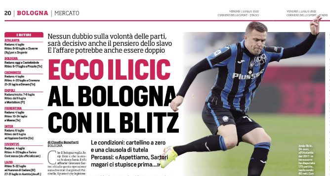 Corriere dello Sport: “Ecco Ilicic. Al Bologna con il blitz”