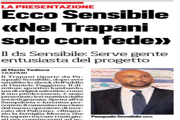 “Il Trapani riparte da Pasquale Sensibile, dopo aver smaltito lo shock dell’addio di Daniele Faggiano. Il direttore sportivo lombardo, ma di origini salentine come il suo predecessore, è stato presentato ieri mattina dalla società granata. Spetta all’ex Sampdoria e Juventus percorrere il cammino tracciato dal nuovo operatore di mercato del Palermo. «Ringrazio la famiglia Morace che ha saputo toccare i tasti giusti per convincermi ad accettare l’offerta – ha esordito Sensibile esprimendo gratitudine e ammirazione nei confronti della proprietà – in questa società ci lavorano delle persone speciali. Mi hanno colpito molto la semplicità, la filosofia e i valori del club. Voglio salutare Faggiano e augurargli un “in bocca al lupo” per la sua nuova avventura». Ripetersi non è affatto semplice, soprattutto dopo aver chiuso al terzo posto l’ultimo campionato di serie B e aver disputato una finale playoff contro ogni pronostico della vigilia. Umiltà e sacrificio, le parole d’ordine di Sensibile: «La scorsa stagione il Trapani ha compiuto un vero capolavoro, ma ora bisogna restare con i piedi per terra e non perdere di vista quella che è la reale dimensione del club. La famiglia Morace è la garanzia per continuare a fare bene». RIECCO SERSE. A distanza di sedici anni si riforma il tandem con Serse Cosmi. Interpreti invariati, è solo cambiato il ruolo del diesse lombardo, passato da mediano a dirigente: «Io e Serse abbiamo lavorato assieme nel 2000. Era il mio allenatore all’Arezzo, mentre il direttore sportivo era Sabatini. Quell’anno giocammo un calcio bellissimo, che ho visto fare al Trapani la passata stagione. Ci siamo incontrati ieri, abbiamo parlato a lungo affrontando varie dinamiche. E’ sempre capace di tirare fuori qualcosa di magico dalle sue squadre». Sensibile si metterà subito al lavoro per concludere le trattative imbastite da Faggiano, perfezionare qualche innesto in entrata e risolvere alcune situazioni in uscita. I nomi di Bruno Petkovic (22) e Matteo Scozzarella (28) sono finiti proprio sul taccuino del Palermo: «Al momento sono incedibili, come Citro. Non intendo cancellare il lavoro svolto finora da chi mi ha preceduto, anche perché condiviso con il tecnico. Parlerò comunque con alcuni calciatori. Chi non è convinto di restare a Trapani deve dirmelo immediatamente e chi verrà deve farlo con entusiasmo, solo così potrà esserci d’aiuto». Quel che è certo è che Sensibile si muoverà sul mercato dietro indicazioni precise: «Cosmi mi ha già detto quale strada seguire e quali puntelli inserire in rosa. Prenderemo al massimo 5 giocatori, ma è probabile che prima possano esserci delle cessioni per sfoltire l’organico». Uno di questi potrebbe essere Davis Curiale (29), di ritorno dal prestito in Lega Pro al Lecce e che piace alla Reggiana.”. Questo quanto si legge sull’edizione odierna de “Il Corriere dello Sport”.