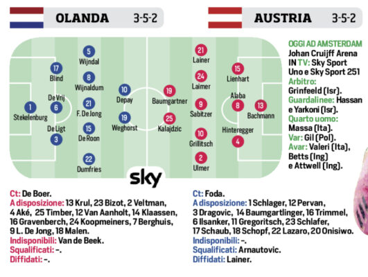 L’edizione odierna del “Corriere dello Sport” si sofferma sulla sfida fra Olanda e Austria.
