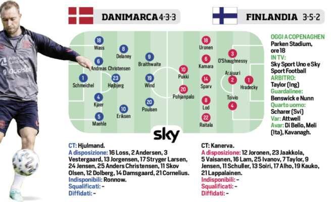 Corriere dello Sport: “Euro 2020, Oggi alle 18 c’è Danimarca-Finlandia, le probabili formazioni”
