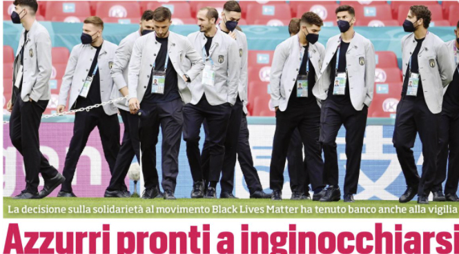 Gli azzurri sono pronti ad un gesto di solidarietà. Inginocchiarsi sarà possibile. «Stasera ci riuniremo come squadra e decideremo come comportarci domani, come avremmo dovuto fare già alla vigilia dell’ultima partita» ha affermato ieri Bonucci in conferenza stampa.