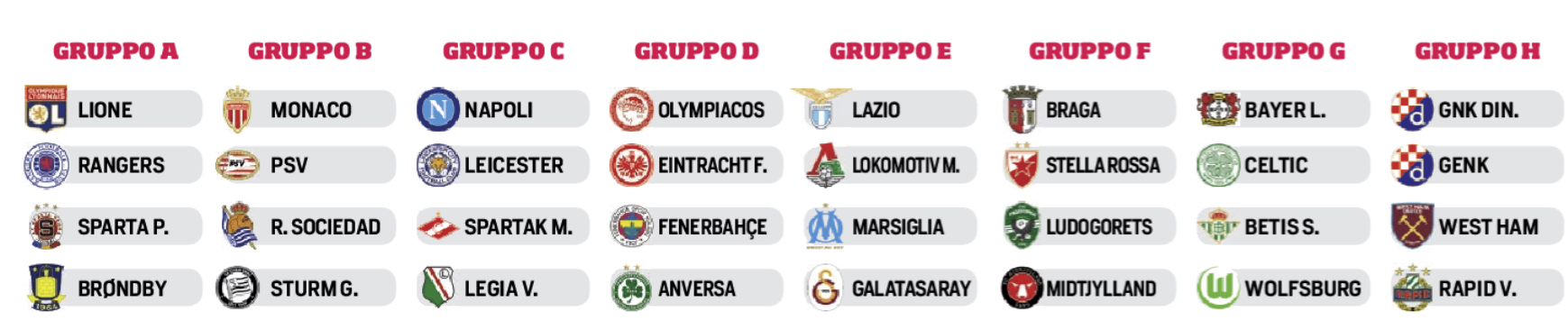 Anche la Lazio ritrova avversari già affrontati e il ds Tare ha ammesso: «Questo è un girone da Champions, ma siamo consapevoli di cosa possiamo fare». Il ricordo più dolce lo suggerisce la seconda fascia: il Lokomotiv Mosca, sfidato, e superato dopo due pareggi, in semifinale di Coppa delle Coppe nel 1999. Si aggiungono il Marsiglia e il Galatasaray