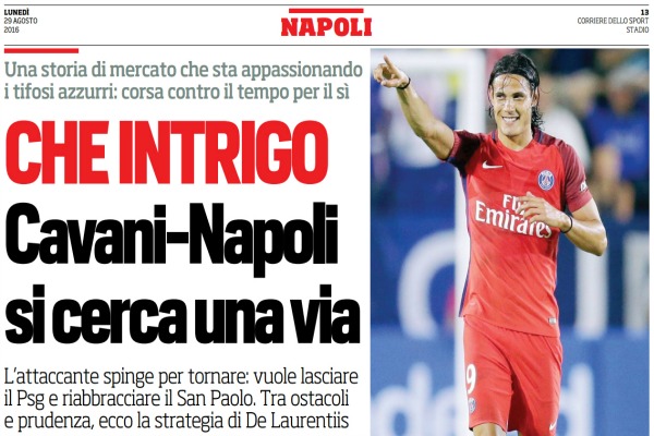 “Cos’è un sogno? E, senza scomodare Freud, basta sistemarsi sul lettino, sul divano, sulla seggiola del San Paolo e immaginarsi ch’entri Cavani, la maglia (numero 9?) sulle spalle, la folla che, incredula, l’invoca. La verità, tutta la verità e nient’altro che la verità d’un affare difficile (ma non ancora impossibile) è nella rilettura d’una settimana folle, che mescola tutto ciò che ruota intorno al calcio e «dentro» le viscere di Napoli, che di football e d’emozioni vive, e che intorno a questo fenomeno, a modo suo paranormale, s’esalta o s’inabissa. Il fatto, separato da qualsiasi opinione, è nella volontà del Napoli di riuscire, con un colpo secco, a riportare Edinson Cavani nello stadio che l’ha eletto a star: non è semplice ma Aurelio De Laurentiis ci ha provato, l’ha fatto con la cautela che in vicende del genere – rischiose peggio d’un boomerang – va usata e, provando a rimanere nell’ombra, ha provveduto ad informarsi, con il diretto interessato, sulle possibilità di ricominciare a scrivere una storia a due. E’ stato un momento, un lampo, una folgorazione che ha «aperto» un «nuovo» Mondo, non percorribilissimo ma né ostruito: Cavani a Napoli tornerebbe per svariati motivi, per il richiamo d’una città dalla quale non si è mai (seriamente) staccato e nonostante l’ostile accoglienza nell’amichevole di due anni fa; ma anche per la voglia matta di stare più spesso al fianco dei suoi figli, che risiedono qua con la loro mamma. IL RETROSCENA. E così è cominciato «il dialogo», perché le aperture a queste servono, s’è parlato anche di soldi e di prospettive, degli ostacoli che il Psg avrebbe posto. Ma s’è (ri)creato quel feeling che pareva scomparso e che invece si è autoalimentato fino a venerdì scorso. Al mercato, e quando si gira intorno a personaggi di così rilevante spessore tecnico, non è come al Centro Commerciale ed esistono passaggi che vanno affrontati con cura: ma la prima mossa, avere il gradimento di Cavani, ha prodotto effetti benefici e la seconda, sullo slancio, quello per riuscire (anche) a trovare affinità sugli aspetti economici, dunque il contratto, è stata definita rapidamente. IL COMUNICATO. Poi ci sono, a catena, le reazioni ambientali, mediatiche e l’eco che la notizia d’un contatto (e già questa è una notizia) con Cavani ha chiaramente generato fibrillazione in una Napoli che, con l’addio di Higuain, ha rivalutato la separazione dal Matador e le modalità con cui si arrivò a quel divorzio nel 2013. E’ successo altro: s’è rigenerato, quasi istintivamente, una condisivione popolare, una sorta di consenso totale, che è divenuta suggestione ma anche pathos. Aurelio De Laurentiis ieri pomeriggio ha pensato di chiarire come possano svilupparsi gli ultimi tre giorni di mercato, ed essendo uomo di comunicazione, ha fatto uso della dialettica in maniera rispettosa, senza mai smentire ciò ch’è stato scritto, semmai analizzando a campo largo: «Io sono un grande estimatore di Edinson Cavani. Con lui ci siamo divertiti molto durante il suo soggiorno napoletano. Ha fatto tanti bellissimi gol: ben 104! Ma è difficile riportare nel Napoli un calciatore del passato». In questa specie di lettera aperta alla città, molto più di un tweet, De Laurentiis ha spiegato anche i motivi – esclusivamente strategici, di politica aziendale – che rappresenterebbero un limite per un trasferimento del genere. «Ecco perché dico sempre che abbiamo bisogno di giovani e già i nuovi arrivati quest’anno contribuiranno fortemente ai successi del Napoli. E per parlare delle punte, giocatori importanti come Milik e Gabbiadini hanno grandi possibilità, nel Napoli, di trovare la loro consacrazione». Ci sono cose che per un manager non si possono dire, o confermare (per esempio: che Gabbiadini sia sul mercato e voglia cercare altrove stimoli) ed altre che si tentano di fare, blindandosi in un silenzio che appartiene al calcio ed al mondo degli affari in genere. Ma De Laurentiis vorrebbe (vuole) Cavani ed “el Matador” sogna Napoli: però esiste un rispetto, una inevitabile prudenza, che deve tutelare qualsiasi passaggio d’una vicenda che non ha dinnanzi a sé troppo tempo. Il timer del mercato è puntato sulle ore 23 di mercoledì 31 agosto e dunque in questi margini di spazio ci si può muovere. LO SCENARIO. Cavani è la prima punta di riferimento del Psg ma, e lo raccontano le cronache, pure protagonista d’una convivenza tutt’altro che invitante: l’uruguaiano non ha mai avvertito intorno a sé le attenzioni che gli ha riservato Napoli, né adesso che è partito Ibrahimovic ha intuito in una inversione di tendenza dell’ambiente. Il fascino del Paris Saint Germain resta inalterato, ed anche le prospettive sarebbero sempre illuminanti, ma la telefonata di De Laurentiis e quell’amorevole cancan l’hanno sedotto sino a stordirlo. Ma c’è poi un’analisi pratica: al Psg servirebbe un centravanti, prima di liberarsi del Matador ed eventualmente accettare i messaggi subliminali che giungono da Napoli e che sarebbero – diventerebbero – propedeutici all’apertura d’una trattativa. L’idea del Psg è quella di lanciarsi su Benzema, diventato la riserva di Morata nel Real Madrid. Ma dopodomani, tra poco più di quarantotto ore, suonerà il Big Ben e non sarà più possibile lanciarsi sul mercato, neanche avendo (tanti) soldi: è questo l’unico, vero nodo intorno al quale rischia di rimanere soffocato un sogno.”. Questo quanto si legge sull’edizione odierna de “Il Corriere dello Sport”.