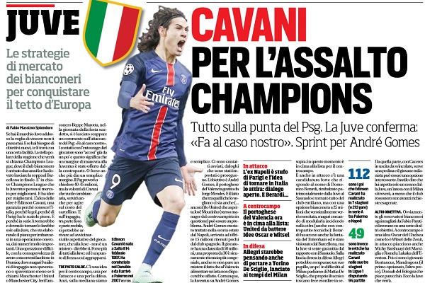 Corriere dello Sport, ex rosa: “Juventus, ora Cavani per l’assalto Champions!”
