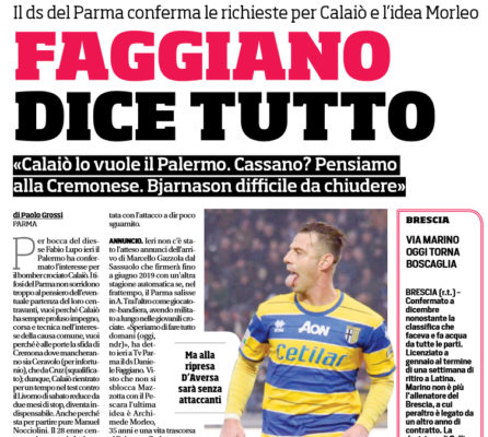 L’edizione odierna de “Il Corriere dello Sport” ha intervistato il ds del Parma Daniele Faggiano, i quali si è espresso in merito al futuro di Emanuele Calaiò, cercato dal Palermo: