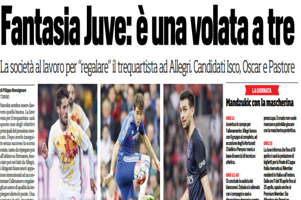 “Stavolta sembra essere davvero quella buona. La Juve vota per il trequartista: sarà questo uno degli obiettivi principali del prossimo mercato. Dopo averlo inseguito senza successo la scorsa estate, tanto da ripiegare poi all’ultimo su Hernanes, bocciato poi nei fatti da Allegri, i dirigenti bianconeri appaiono intenzionati ad accontentare l’allenatore e regalargli un uomo di qualità da impiegare dietro le punte. Una opzione in più, insomma, per puntare al 4-3-1-2 tanto caro a Max che quest’anno, tra assenza del profilo giusto, infortuni (Pereyra), necessità di andare sul sicuro con il 3-5-2 per risalire la corrente dopo l’inizio nefasto di campionato, non è stato possibile adottare con continuità. Il prossimo anno, a quanto pare, potrebbe andare diversamente perché nel mirino degli uomini mercato juventini c’è proprio un trequartista. E la rosa dei candidati è composta da Isco, Oscar e Pastore. Tutti giocatori di grande qualità, reduci da una stagione complicata nei rispettivi club e quindi vogliosi di riscatto e di cambiare aria. L’ostacolo è sempre lo stesso: il costo, che si aggira per tutti sui 35-40 milioni. EL FLACO. Partiamo da Pastore. Come Isco e Oscar, l’argentino è un vecchio pallino della Juve e come i colleghi è in cerca di rilancio. Il tecnico Blanc e il Flaco non hanno instaurato un ottimo feeling (eufemismo), come conferma il bilancio a questo punto della stagione: 22 presenze, 2 gol e 4 assist per l’ex Palermo, sempre più triste in panchina. Il giocatore è vincolato da un contratto, da poco rinnovato, fino al 2019 e questo potrebbe costituire un ostacolo in più ma, essendo ancora a metà aprile, tutto è ancora da scrivere. E, di certo, il nome di Pastore è ben presente sul taccuino degli uomini mercato bianconeri. FANTASIA BRASIL. Stesso discorso vale per Oscar, pupillo del direttore sportivo Fabio Paratici che in più occasioni ha provato a portarlo a Torino. Questa potrebbe essere la volta buona perché il brasiliano ha la valigia pronta per lasciare il Chelsea. Non rientra infatti nei piani di Antonio Conte, prossimo tecnico del Blues. La Juve quindi vigila e, nel caso, si prepara ad affondare il colpo. Servono 35 milioni per accaparrarsi questo talento classe ’91, cifra che i dirigenti bianconeri hanno in animo di abbassare presentandosi al tavolo di trattativa con gli omologhi inglesi. Con i quali non mancherà occasione di trovarsi visto che c’è da risolvere anche la questione del riscatto di Cuadrado. Il colombiano è in prestito e i due club hanno raggiunto un gentlemen’s agreement verbale per un riscatto a 22 milioni. Anche in questo caso bisognerà discutere e trattare perché l’ex Fiorentina sta vivendo una stagione da protagonista in bianconero, il suo rendimento ha soddisfatto tutti, ma c’è da fare i conti con… Conte, suo grande estimatore già da quando era sulla panchina della Juve, che potrebbe volerlo con sé nell’avventura in Premier League. DAL REAL. Il terzo petalo della margherita risponde al nome di Isco. Il centrocampista originario dell’Andalusia è pronto a cambiare maglia. Troppo a singhiozzo la sua stagione pre-Europei al Real Madrid sotto la guida prima di Benitez, con cui i rapporti si sono presto interrotti, e poi con Zidane con il quale l’intesa non è comunque decollata. Anche per lui è scattata l’ora di rimettersi in gioco e la Juve è attenta a possibili opportunità che si possono sviluppare. Pure con le merengues ci dovranno essere, già a breve termine, discorsi approfonditi sul futuro di un altro gioiello, vale a dire Alvaro Morata. Ecco allora che le argomentazioni potrebbero coinvolgere anche Isco. La Juve farà un’offerta per trattenere il centravanti e disinnescare l’opzione di «recompra» in favore del Real e magari si potrebbe arrivare a uno scambio tra i due. Il gran ballo del trequartista è appena iniziato”. Questo quanto si legge sull’edizione odierna de “Il Corriere dello Sport”.