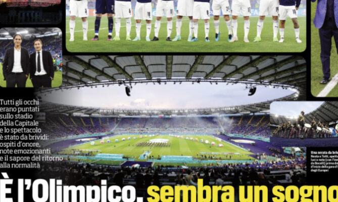 Corriere dello Sport: “Festa Nazionale. È l’Olimpico, sembra un sogno: ospiti d’onore, note emozionanti e il sapore del ritorno alla normalità”