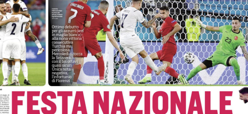 Una notte di magie, di intelligenza e di maturità. Così l’Italia si è presentata al Presidente Mattarella, al Paese e all’Europa del calcio, stravincendo all’alba del torneo, in tinta con una cantata epica di Bocelli prima del via, in modo autorevole e spettacolare, soprattutto nel secondo tempo, quando una volta fattasi male da sola (autorete di Demiral), la Turchia si è sciolta sotto i colpi di Immobile e Insigne, attesi alfieri della Nazionale di Mancini.