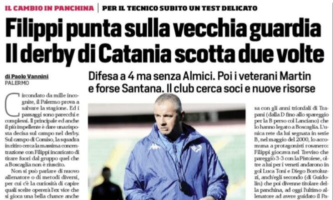 Corriere dello Sport: “Filippi punta sulla vecchia guardia. Il derby di Catania scotta due volte”