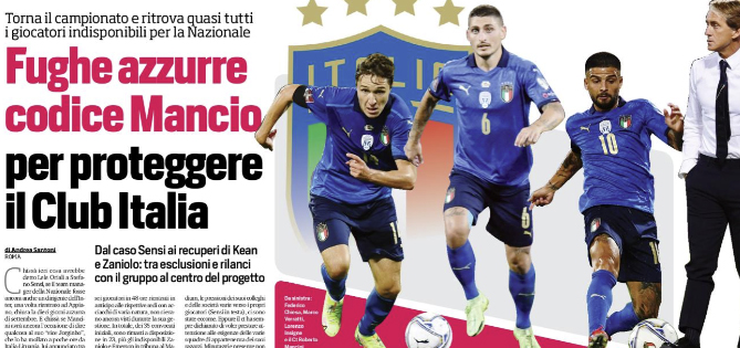 Corriere dello Sport: “Fughe azzurre, codice Mancio per proteggere il Club Italia”