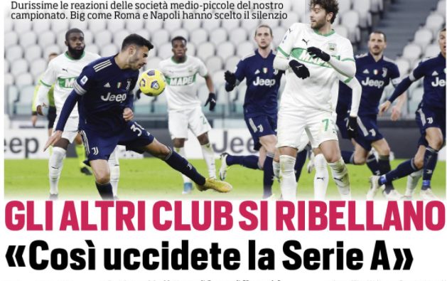 Corriere dello Sport: “Gli altri club si ribellano «Così uccidete la Serie A». L’attacco di Carnevali (Sassuolo) «Noi presi in giro, ora ci rivarremo sul mercato». Sabatini (Bologna) «Ribrezzo, siamo al feudalesimo»”