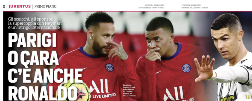 Corriere dello Sport: “Gli sceicchi, gli sponsor, la supercoppia con Neymar: assalto del PSG a Ronaldo”
