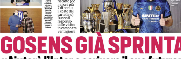 L’edizione odierna de “Il Corriere dello Sport” si sofferma sull’arrivo di Gosens all’Inter.