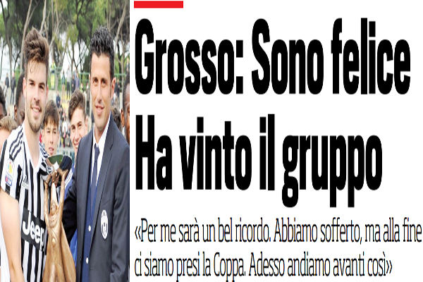 Corriere dello Sport: “Grosso: «Sono felice, ha vinto il gruppo. Palermo mi aveva già dato un dispiacere…»”