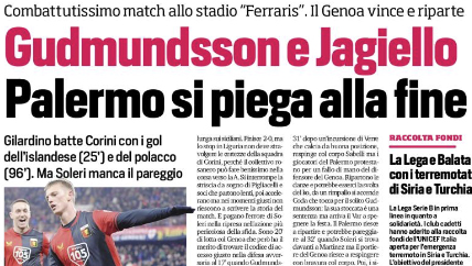 Corriere dello Sport: “Gudmundsson e Jagiello, Palermo si piega alla fine”