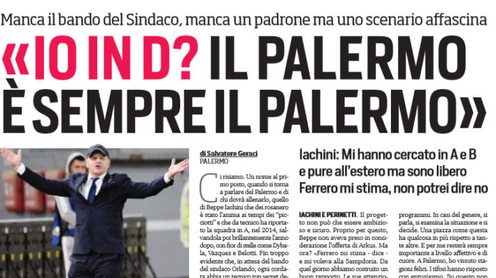 Corriere dello Sport: “Iachini rilancia: «Io in D con il Palermo? Nessun problema. Ferrero…»”