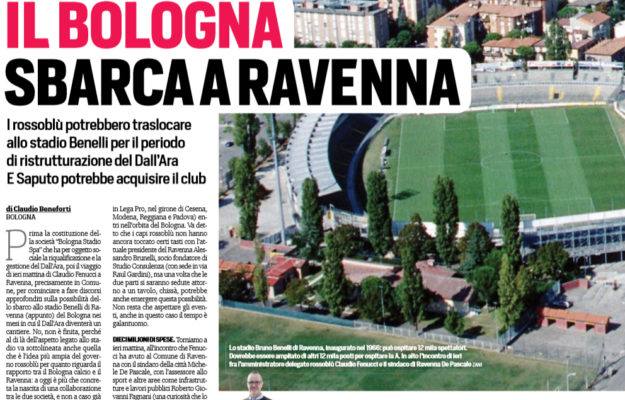 L’edizione odierna del “Corriere dello Sport” si sofferma sulla riqualificazione dello stadio del Bologna. Ieri, Fenucci si è recato a Ravenna per valutare la possibilità di giocare allo stadio Benelli nei mesi in cui il Dall’Ara diventerà un cantiere. Ad oggi è più che concreta la nascita di una collaborazione tra le due società, e non a caso già a fine estate il tema sarebbe stato trattato da Marco Di Vaio con gli stessi dirigenti del Ravenna, ma il bello deve ancora venire. Leggete qua: non è escluso che Joey Saputo possa decidere o di acquistare il Ravenna o quanto meno di investire in questa società affinché la squadra giallorossa (che oggi gioca in Lega Pro, nel girone di Cesena, Modena, Reggiana e Padova) entri nell’orbita del Bologna. «In virtù dei rapporti che legano le due città e le due tifoserie, Comune di Ravenna e il Bologna, con il fondamentale supporto del Ravenna Football Club, hanno avviato un confronto tecnico per capire se Ravenna potrà dare ospitalità al Bologna per il periodo di ristrutturazione del Dall’Ara», il succo del comunicato del sindaco.