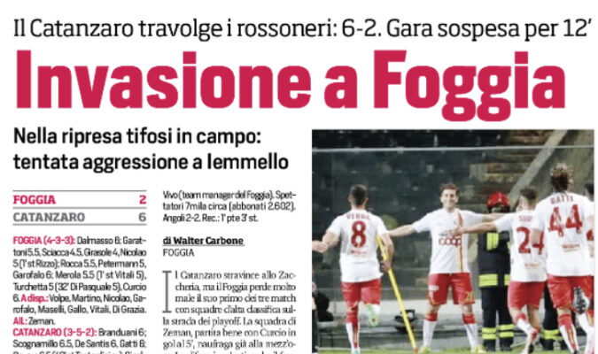 L’edizione odierna de “Il Corriere dello Sport” si sofferma sulla gara di ieri tra Catanzaro e Foggia.