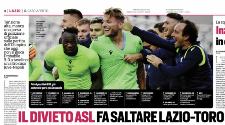 Corriere dello Sport: “Il divieto Asl fa saltare Lazio-Torino”