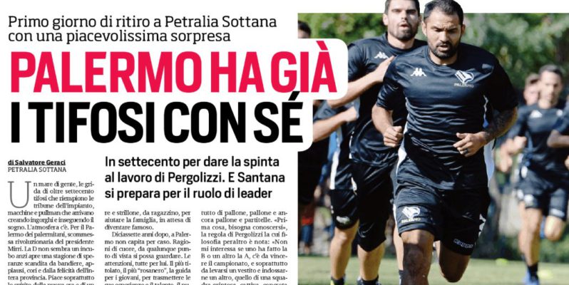 L’edizione odierna del “Corriere dello Sport” si sofferma sull’abbraccio dei tifosi rosanero nel ritiro di Petralia Sottana. Oltre settecento supporters si sono recati nel borgo delle Madonie per il primo giorno del ritiro del Palermo. L’atmosfera c’è, per il Palermo dei Palermitani del rivoluzionario Dario Mirri. Piace lo spirito della nuova era e di un Palermo amato e condiviso. La squadra è quasi fatta, con l’arrivo di pezzi da novanta come Lancini, Martinelli e Martin, ma Sagramola promette l’arrivo di un nuovo centrocampista per la giornata di domani.