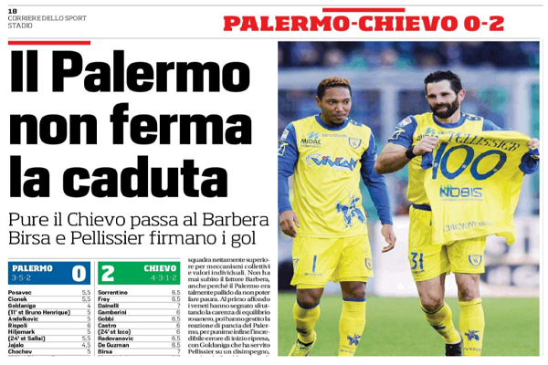 “Non c’é allenatore nuovo, o stadio pieno e pronto ad appoggiarti a poter rivitalizzare il Palermo visto ieri. Il debutto di Corini, in maniera commovente da una tifoseria capace di portare oltre 20.000 persone al Barbera per crederci ancora, stato un altro, incredibile flop, anche peggio dei precedenti con De Zerbi : nona sconfitta consecutiva, ottava di fila in casa, ultimo posto solitario in classifica con 5 punti di distacco dall’Empoli. Contro il Chievo dell’ex Sorrentino (cori e applausi anche per lui), c’erano tutte le condizioni per giocare una partita quantomeno aggressiva davanti ad una folla in attesa solo di una scintilla per trascinare. Invece il Palermo è apparso molle, inconsistente e timoroso come non mai. Dieci passi indietro rispetto alla promettente gara di Firenze, persi per uno sfortunato episodio. Ieri il Chievo ha dato dal primo minuto l’impressione di essere una squadra nettamente superiore per meccanismi collettivi e valori individuali. Non ha mai subito il fattore Barbera, anche perché il Palermo era talmente pallido da non poter fare paura. Al primo affondo i veneti hanno segnato sfruttando la carenza di equilibrio poi hanno la reazione di pancia del Palermo per punire infine l’incredibile errore di inizio ripresa, con Goldaniga che ha servito Pellissier su un disimpegno, regalando il raddoppio e affossando definitivamente le speranze di riscossa. Per l’attaccante clivense festa grande per il 100° gol realizzato in A con questa maglia, per Maran una vittoria dalle, dedicata alla madre appena scomparsa”. Questo quanto si legge sull’edizione odierna de “Il Corriere dello Sport”.