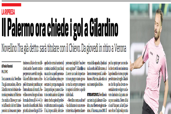 Corriere dello Sport: “Il Palermo ora chiede i gol a Gilardino. Novellino l’ha già detto: «Sarà titolare con il Chievo». Da giovedì in ritiro a Verona”