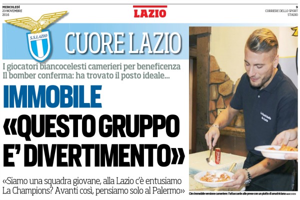 Corriere dello Sport: “Immobile: «Siamo una squadra giovane, alla Lazio c’è entusiamo. Champions? Avanti così, pensiamo solo al Palermo»”