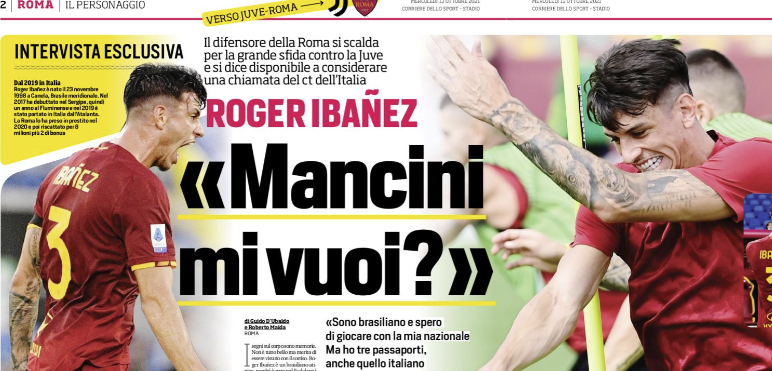 L’edizione odierna de “Il Corriere dello Sport” riporta un’intervista a Roger Ibanez, calciatore brasiliano che si propone a Mancini.