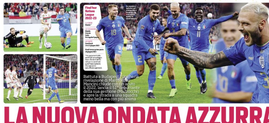 Ancora Giacomino, modello Paolo Rossi, per la prima volta il volante Dimarco. Così il tricolore è rimasto a righe verticali, sventolando qui a Budapest, dove l’Italia si è presa il piacere e perfino il gusto di battere l’Ungheria rivelazione di Marco Rossi, bissando il successo dell’andata, a Cesena, scavalcandola in cima alla classifica, e conquistando di nuovo la Final Four di Nations League, prevista il giugno prossimo nei Paesi Bassi, dove oltre agli olandesi sono già attesi i croati e la vincente di Portogallo-Spagna di stasera.