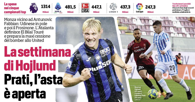 Corriere dello Sport: “La settimana di Hojlund. Prati, l’asta è aperta. Tutte le trattative del giorno in serie A”
