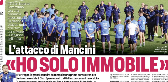 Corriere dello Sport: “L’attacco di Mancini: «Ho solo Immobile»”
