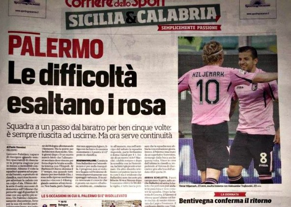 “Lazzaro-Palermo, capace di risorgere quando sembra spacciato e di rilanciare la propria stagione pur in mezzo a incredibili controversie. Almeno 5 volte la squadra è apparsa ad un passo dal baratro, soprattutto in classifica, ma è riuscita sempre ad evitare la caduta con un colpo d’ala. Ultimo della serie il netto successo di domenica sull’Udinese che permette oggi di guardare le cose con uno spirito più sereno […]”. Questo si legge sull’edizione odierna de “Il Corriere dello Sport” in merito alla forza dei rosanero di rialzarsi nei momenti difficile: tutto comincia da Bologna, dove reduci da quattro sconfitte di fila e da un ritiro punitivo con Iachini ancora in sella. Di seguito tutte e cinque le occasioni: