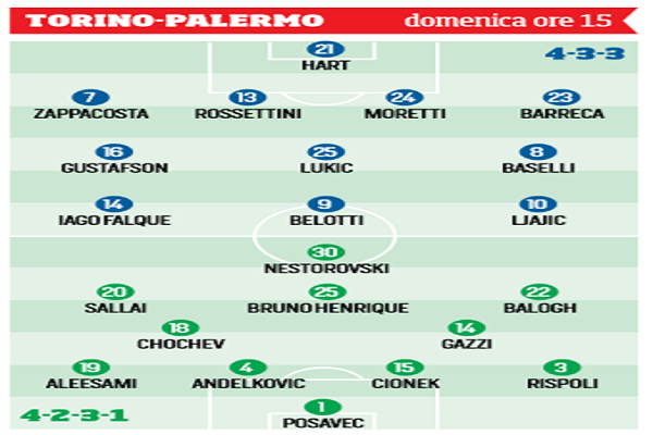 Corriere dello Sport: le probabili formazioni di Torino-Palermo