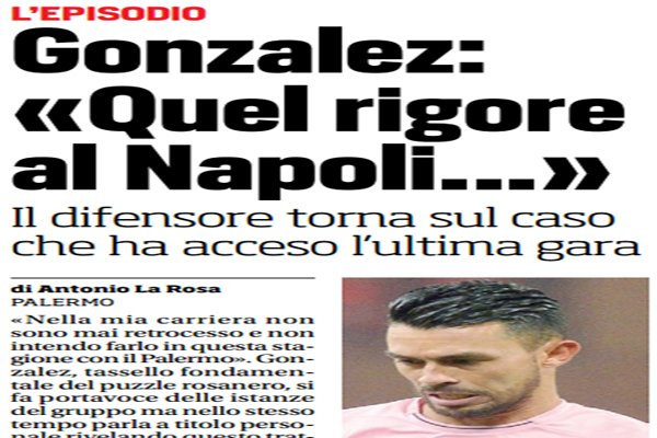 Corriere dello Sport: “L’episodio, Gonzalez: «Quel rigore al Napoli…». Il difensore torna sul caso che ha acceso l’ultima gara”