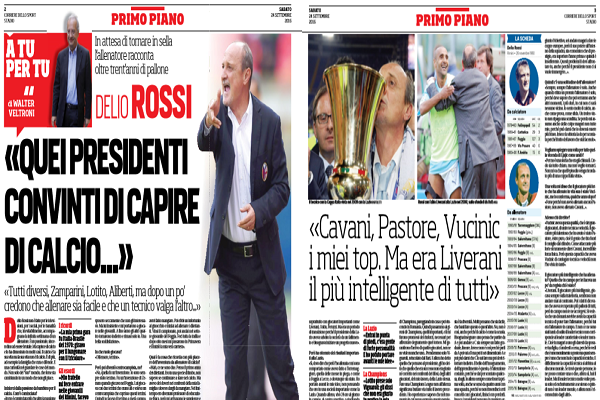Corriere dello Sport: “L’ex rosa Delio Rossi si racconta: «Quei presidenti convinti di capire di calcio…Cavani, Pastore, Vucinic i miei top. Ma era Liverani il più intelligente di tutti»”