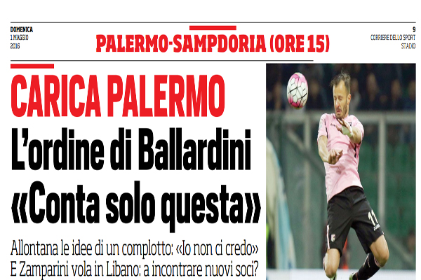 Corriere dello Sport: “L’ordine di Ballardini: «Conta solo questa». Allontana le idee di un complotto: «Io non ci credo». E Zamparini vola in Libano, incontri con nuovi soci?”