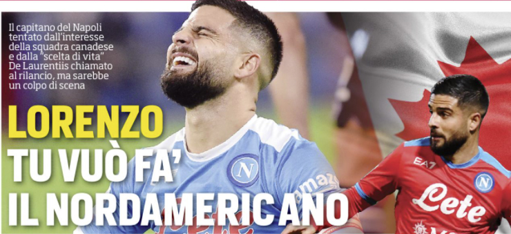 Uno scugnizzo a Toronto. Nel 1984, quando Nino D’Angelo faceva lo scugnizzo a New York, lui non era neanche nato, ma questa strana storia di calcio che a tratti sembra un film e a volte una telenovela può serenamente chiedere in prestito il titolo ritoccandolo un po’. Di 551 chilometri di distanza, per la precisione: sì, perché ora Lorenzo Insigne comincia a essere tentato di accettare la maxi offerta del Toronto FC, club canadese della Mls e soprattutto unica società che in questi lunghi mesi di schermaglie, frecciate, dispetti e incontri (pochi) tra il Napoli e il suo manager, Vincenzo Pisacane, ha dimostrato l’intenzione di accontentare il capitano azzurro e di portare uno svincolato deluxe nella lega statunitense-canadese.