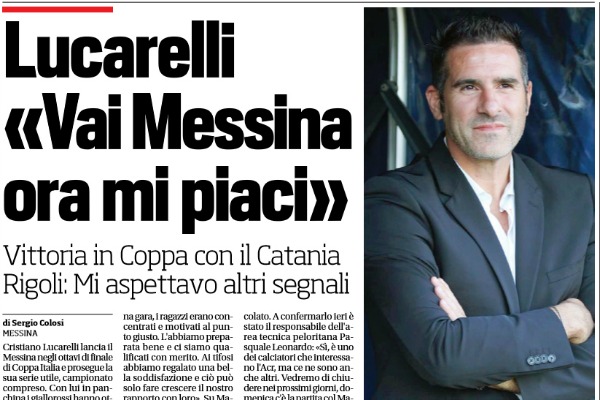 Corriere dello Sport: “Lucarelli: «Vai Messina ora mi piaci». Vittoria in Coppa con il Catania. Rigoli: «Mi aspettavo altri segnali»”