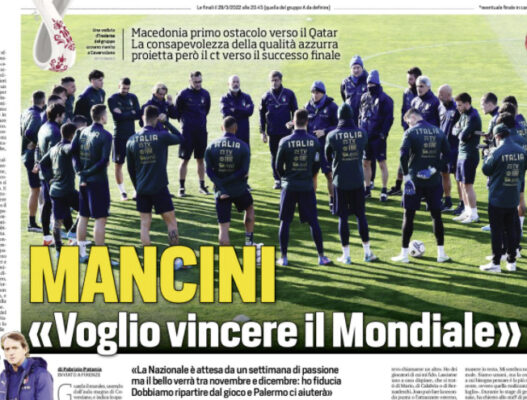 Corriere dello Sport: “Mancini «Voglio vincere il Mondiale. Dobbiamo ripartire dal gioco e Palermo ci aiuterà»”