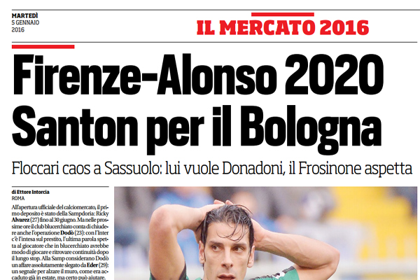 Corriere dello Sport, mercato serie A: “Floccari vuole il Bologna, Inter su Eder. Il Palermo insiste per Sensi”
