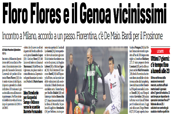 Corriere dello Sport, mercato serie A: “Floro Flores e il Genoa vicinissimi. Incontro a Milano, accordo ad un passo. Fiorentina, c’è De Maio – tutte le trattative”