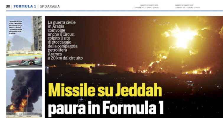 L’edizione odierna de “Il Corriere dello Sport” si sofferma sul missile su Jeddah durante la Formula 1.